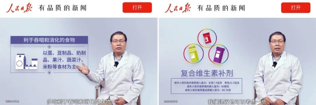 · 需注意少量多餐,多吃利于吞咽和消化的食物。注意补充足量的优质蛋白质,尽可能做到食物多样性。如果不能保证营养素足量摄入,可考虑一些营养素补充剂,比如蛋白粉、复合维生素补剂等。