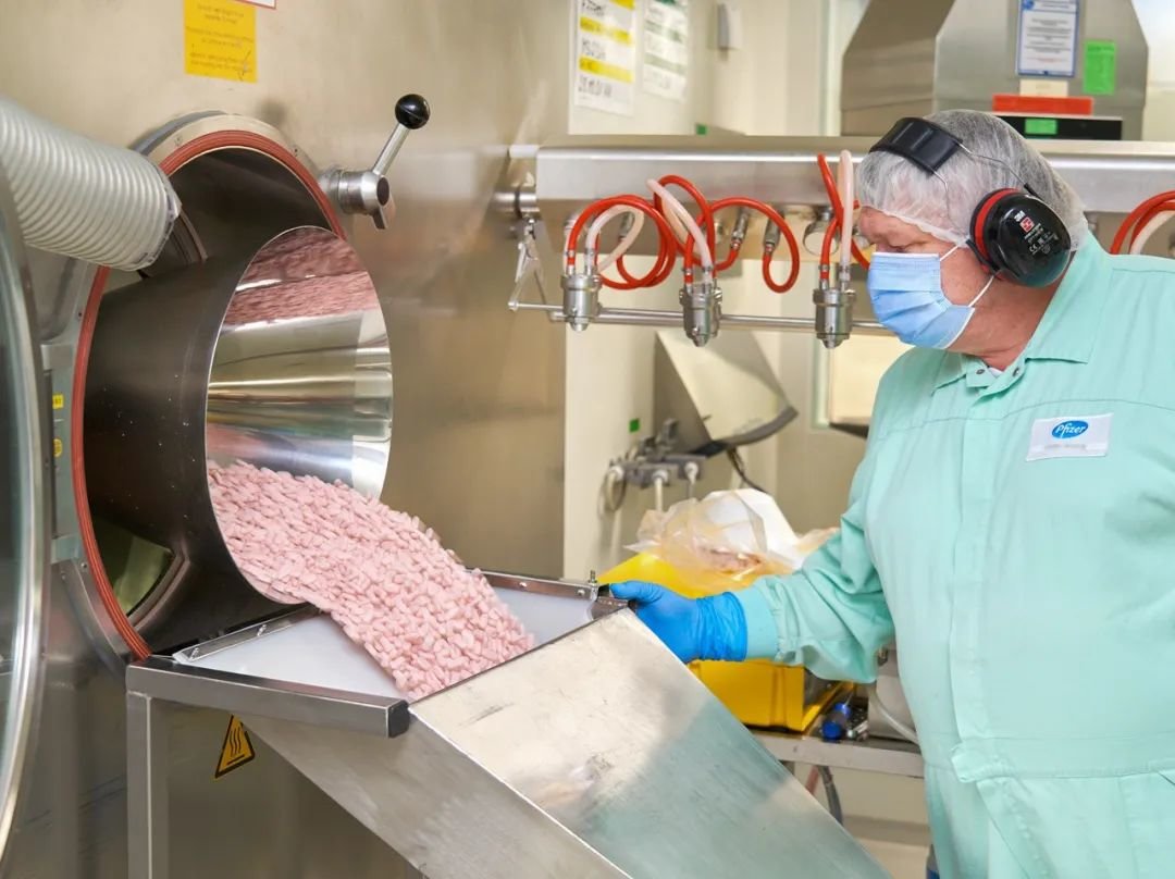 德国辉瑞工厂,实验室工作人员检查Paxlovid药片。