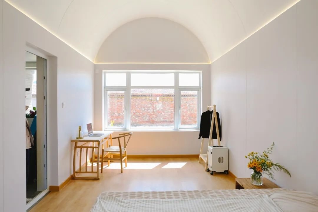 室内共有5个房间,两间卧室,一个客厅,外加卫生间、厨房,一家人非常满意。室内因为做的是拱顶,特别敞亮。