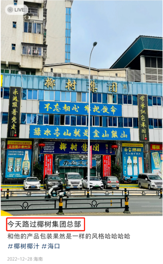 椰树的老板有两大特点,第一个特点是审美很土,不仅产品的外包装很土,甚至连自家总部集团的办公大楼都土的惊人。
