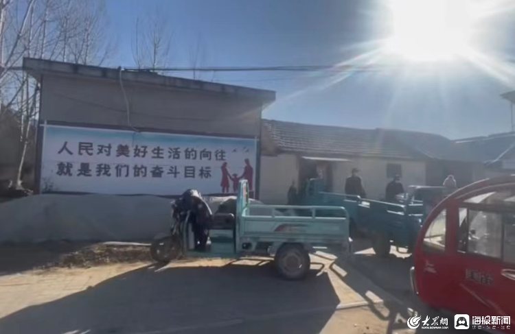 陈女士和婆婆一起去压粮食,门口有不少村民在排队等待