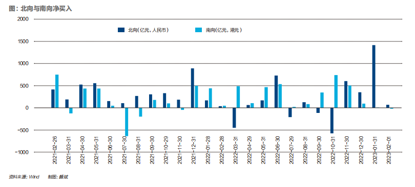 北向资金的操作并不是孤立的。早在2022年四季度,内地资金就以陆港通中的港股通为渠道,南下中国香港抄底。2022年10月,南向资金净买入737.56亿港元;11月南向资金净买入501.59亿港元;12月南向资金净买入94.21亿港元。