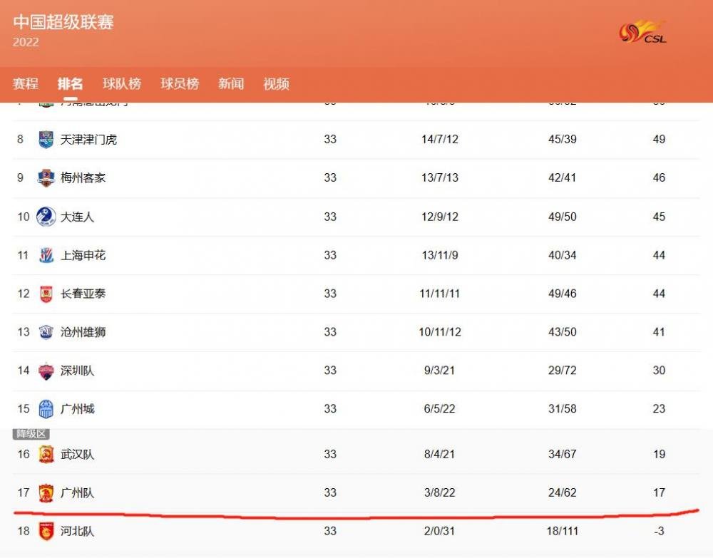 如果说前三起“黑天鹅”只是在中国足球的某个领域,涉及的球队和球迷都相对有限的话,那么第四起“黑天鹅”可谓直接“打脸”中国足球职业联赛。12月27日,在1:4不敌长春亚泰后,中国足球的标志性球队、“八冠王”广州队(更名前叫广州恒大)居然提前降级了。