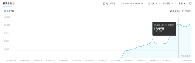 《乌梅子酱》的百度搜索指数,2.10开始有明显上涨。