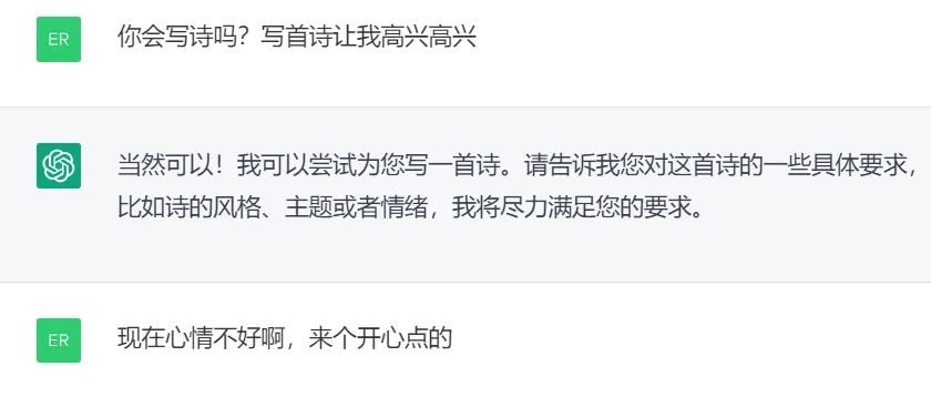 看来诗人们短时间还不会被替代,不过貌似ChatGPT情商还不错,回的话都基本说到点了,还挺谦逊,也足够圆滑,比如我问他“北大好还是清华好?”他说这是一个相当有争议的问题,因为没有明确的答案。看来给ChatGPT打工的北大清华学子数目相当。