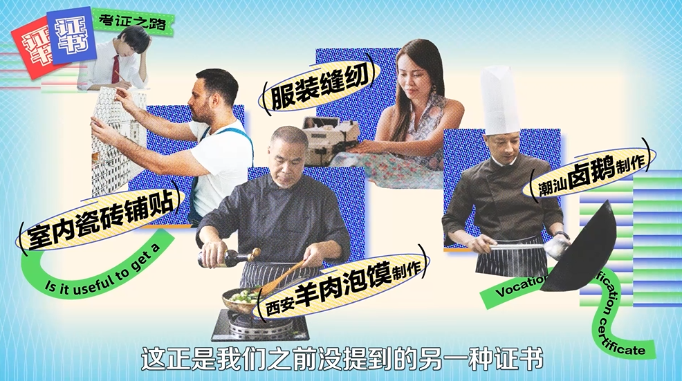 对于很多像她一样“山穷水复疑无路”的考证人来说,一本证书,或者说考证的过程本身,就是前方的柳暗花明。而这无关证书的“含金量”,也无关考试的难度,可能仅仅是一个微不足道的技能,比如“室内瓷砖铺贴”,比如“服装缝纫”,甚至是“西安羊肉泡馍制作”“潮汕卤鹅制作”。这正是我们之前没提到的另一种证书,“专项能力证书”。