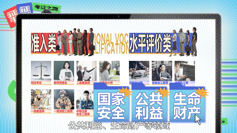 这些证书又可以分为“准入类”和“水平评价类”两种,一般都涉及到国家安全、公共利益、生命财产等领域。