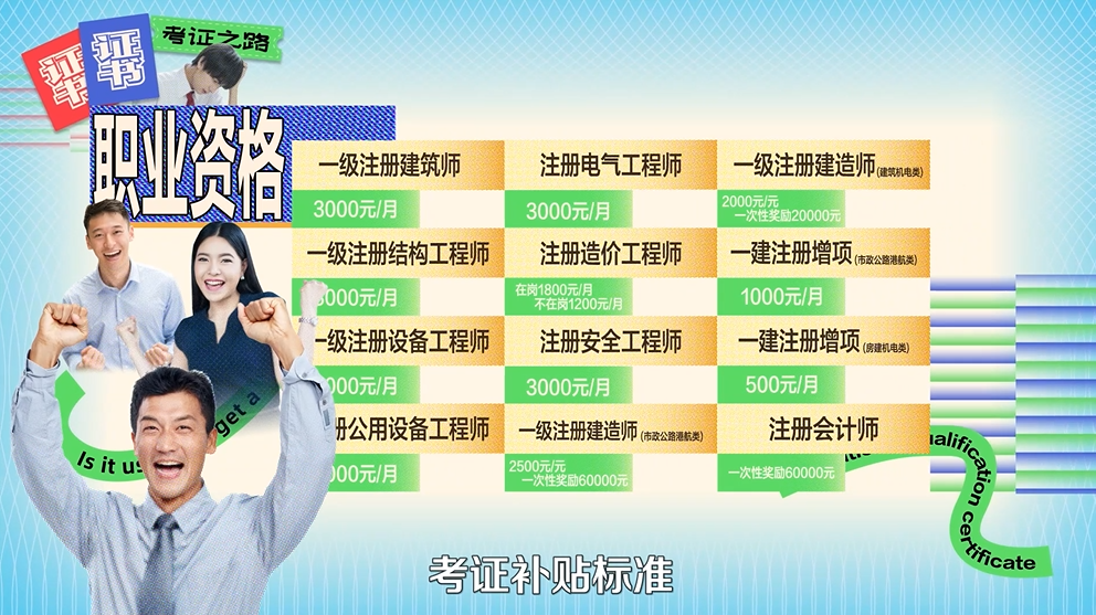 但也有一些证书,跟升职加薪有着非常密切的关系。有的公司甚至明确规定,有证就发钱。比如这是某建筑公司内部的考证补贴标准,一级注册建筑师每月补贴3000块。德勤、安永等四大会计师事务所也会为持有注册会计师证(CPA)的员工发放Q pay,一个月也有两三千。
