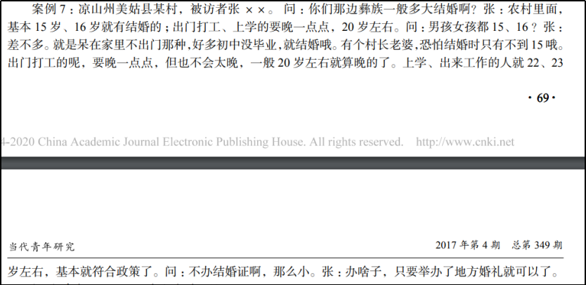 乌鸦找到了一篇发表于2017年7月的论文,名为《农村地区彝族青年婚姻困境破解的公共政策支持》,课题组采用质性研究的方法,对四川凉山彝族自治州近十个村镇县乡的的彝族青年婚姻状况进行田野调查。
