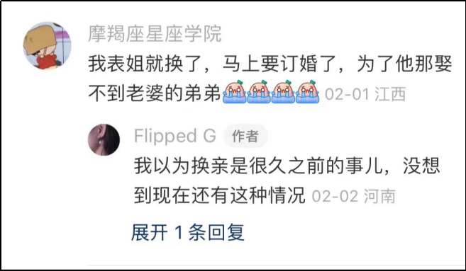 甚至,有的地方家长因承担不起儿子的彩礼,就把女儿直接拿去“换亲”或者“转亲”,直接连彩礼这步都省了。