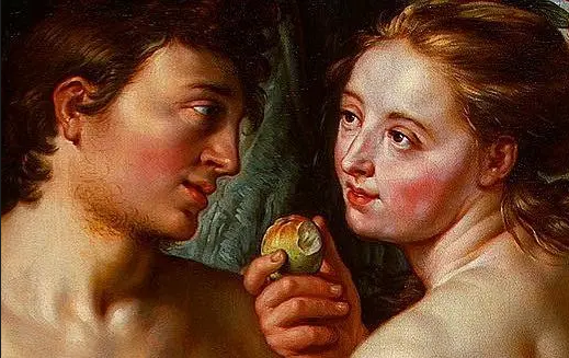 由此我们想到《圣经》里那个故事——亚当和夏娃,因为偷吃禁果而受了神的厌弃与恐惧,被赶出了伊甸园 ,成为了真正的人。
