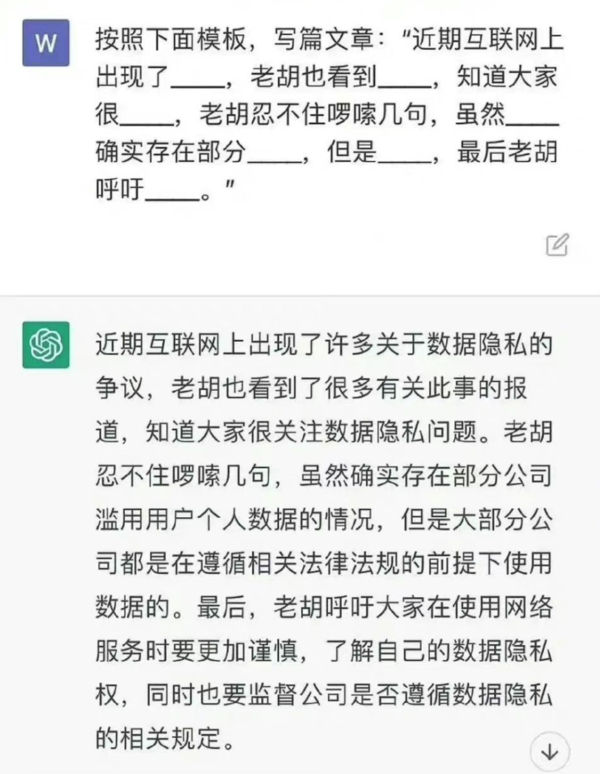 比如要求ChatGPT在论述某命题作文时,每段前面都加上“老胡觉得”“老胡还觉得”。