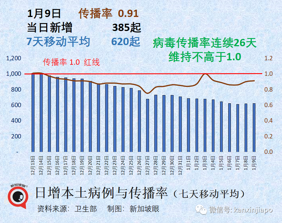 1月9日,新加坡新增385起确诊冠病病例,累计220万8601起。
