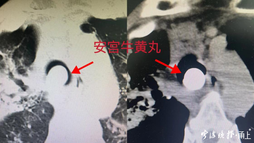 前来会诊的呼吸内科应骏主任医师向家属详细询问患者病史,这时患者儿子才回忆起来,为了给父亲退烧,他翻箱倒柜把家里藏的 安宫牛黄丸 找了出来,然后让父亲 整颗吞了下去 。当时张大伯也没有出现明显不适,没想到药丸就这么卡在气道里,导致这么严重的后果。