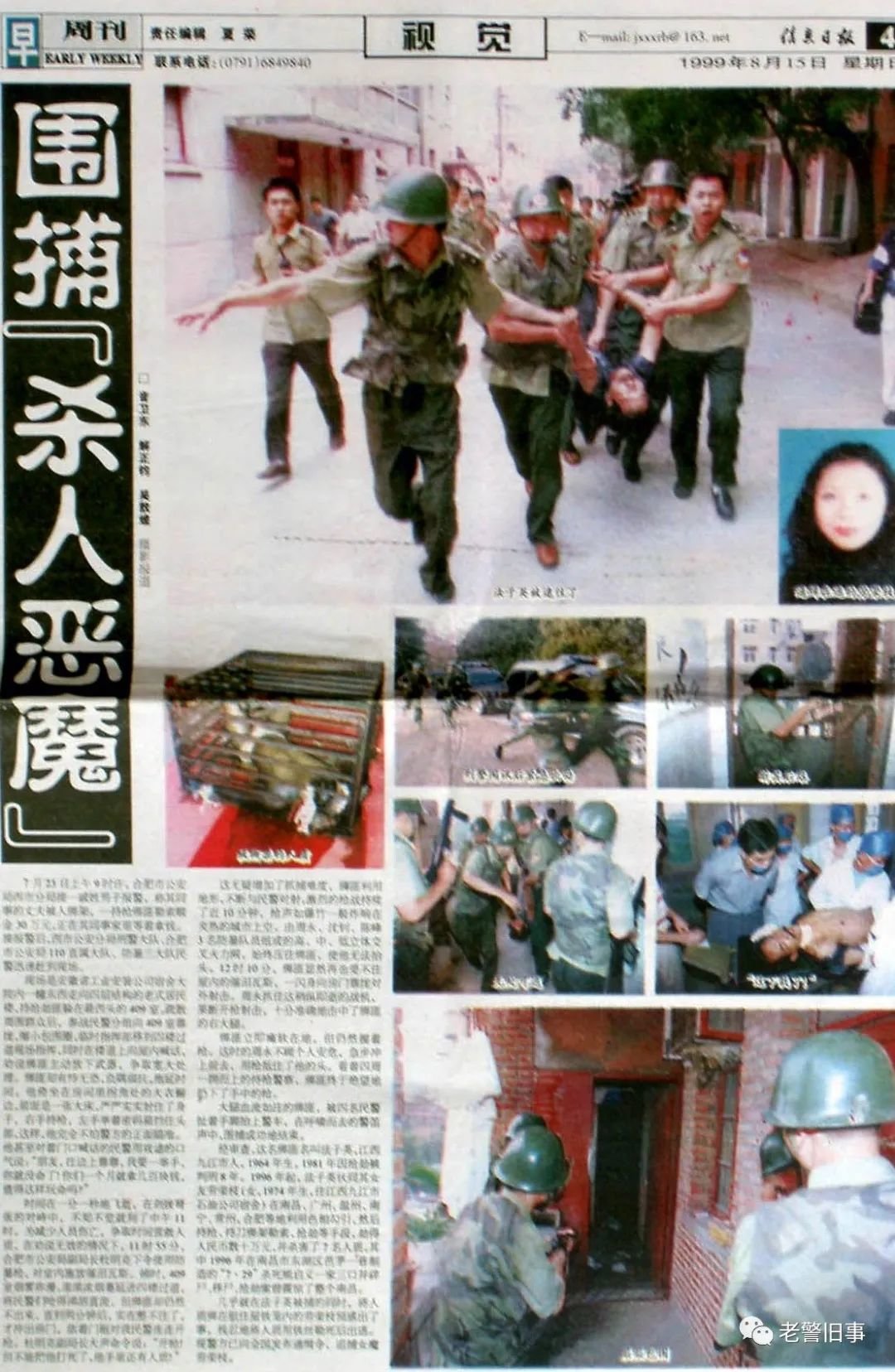 1999年7月23日,合肥市发生了一起持枪绑架人质案。绑匪被警方包围后,持枪负隅顽抗,警匪双方拔枪互射,手持相机的我夹在警匪之间,数十发子弹从我的耳边飞过。