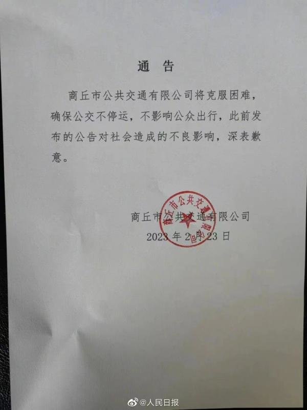 这一次,商丘市公共交通有限公司也是宣布将停运的当天,又发布了纸质的最新通告:“将克服困难,确保公交不停运,不影响公众出行,此前发布的公告对社会造成的不良影响,深表歉意。”同时,商丘市人民政府也做出通报,市财政一直按约定对该企业予以补贴。“市政府工作组已进驻,将依法依规查明情况,进一步纾困解难,确保市区公共交通正常运营”。