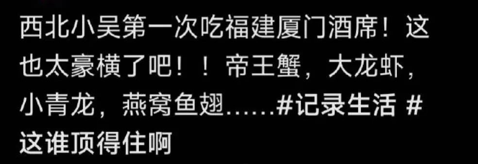 据说一位东北人随礼600元去福建参加闺蜜婚礼,到了发现农村的露天婚宴,“一桌菜至少20个龙虾、东星斑、佛跳墙……”。