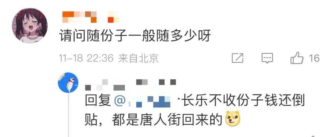 问:这得随多少份子钱?答案是不需要,谢谢。