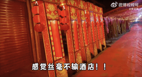 然后猛一瞅才发现,自己竟然置身于红彤彤的乡村喜宴大帐篷。