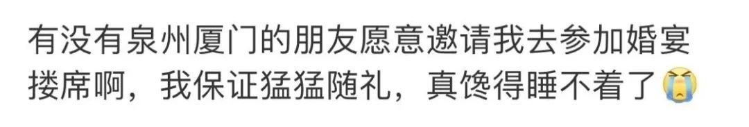 “有没有福建的朋友愿意请我去,我保证猛随礼。”
