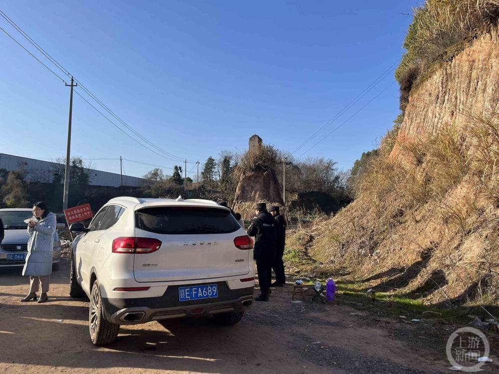 ▲1月30日,通向发现胡鑫宇遗体的树林现场附近多个路口,均有当地政府工作人员把守。摄影/上游新闻记者 萧鹏