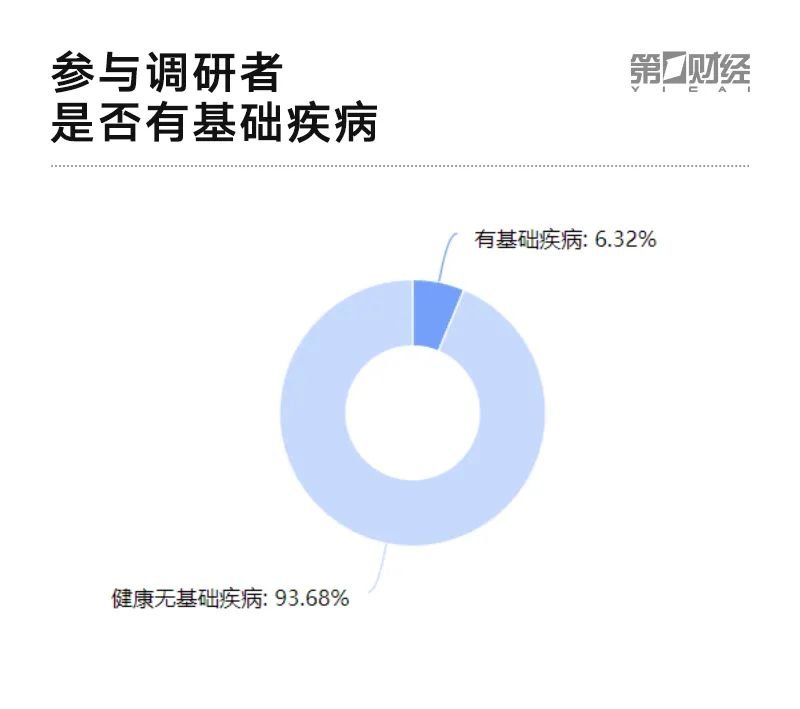另外,根据结果统计,参与调研的感染者中,变“阳”之前,约94%的人没有基础疾病。
