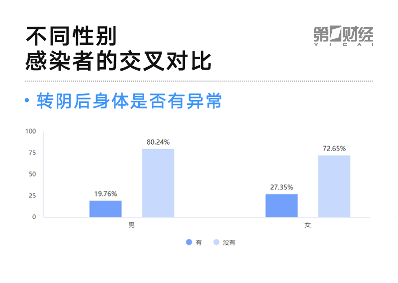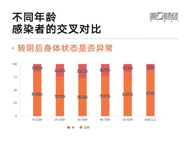 另外,根据调研结果分析,转阴后,中年人状态异常比例较高,这可能和中年人需要照料家庭的同时还要兼顾工作,没有足够的休养时间有一些关系。
