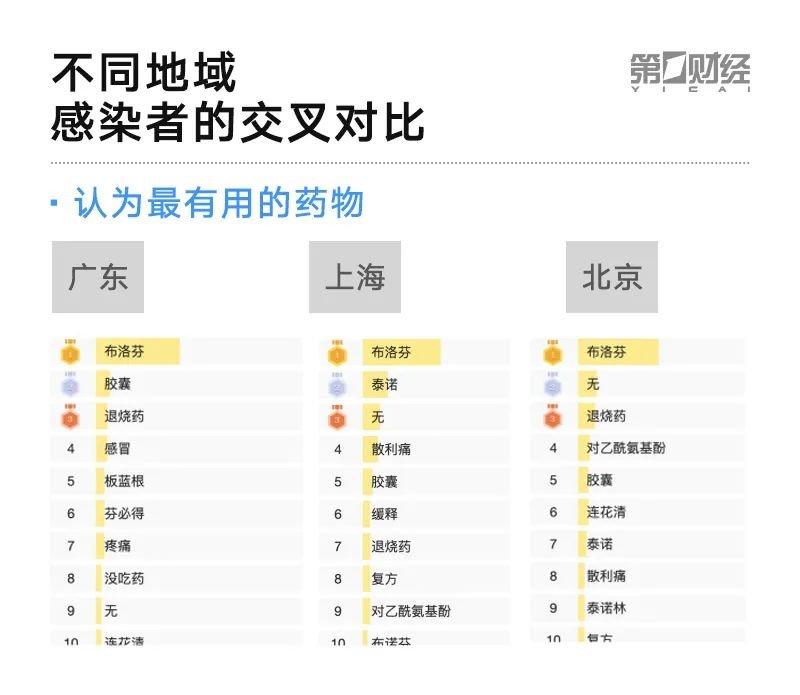 北京感染者超80%的人在感染前有提前备药,这一比例超过广东和上海。从用药热度来说,布洛芬稳居第一,而乙酰氨基酚、泰诺、连花清温胶囊、散利痛、芬必得等药物也是常用药物。