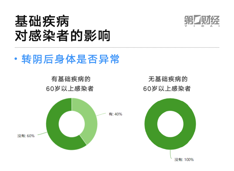 根据统计结果,我们还发现,有基础疾病对转阴后身体状态的恢复有一定影响,尤其体现在老年人身上。