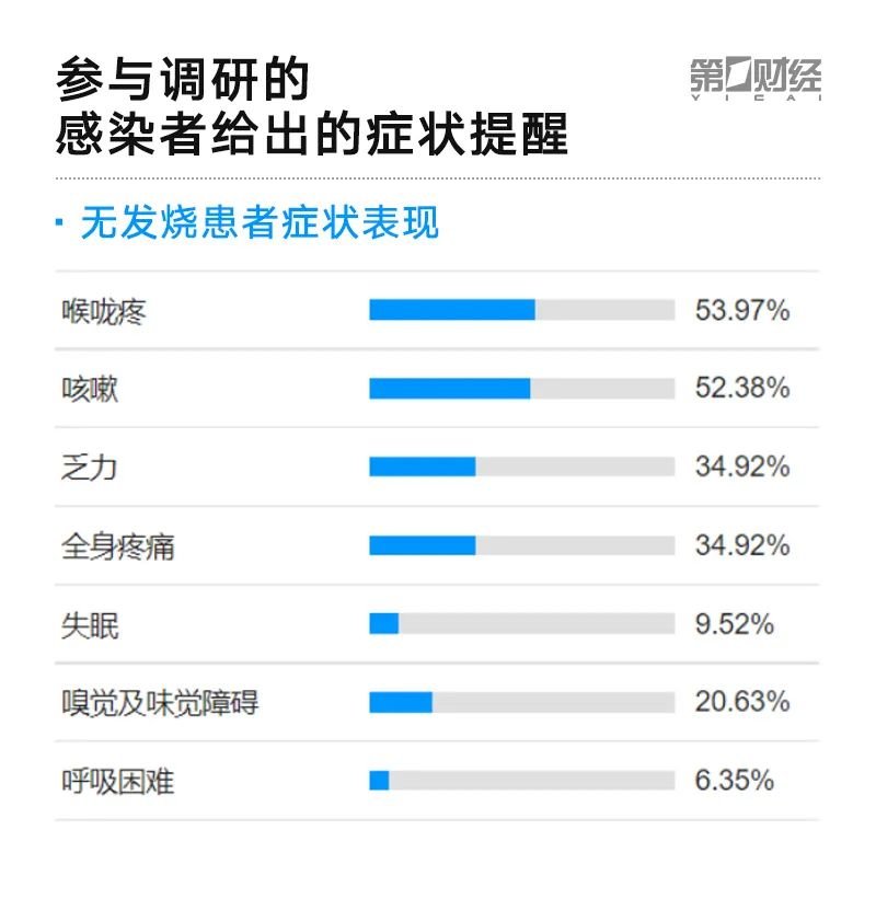 除此以外,有近2.5%感染者表示,自己是轻症状和无症状,整个感染过程没什么太大感觉。