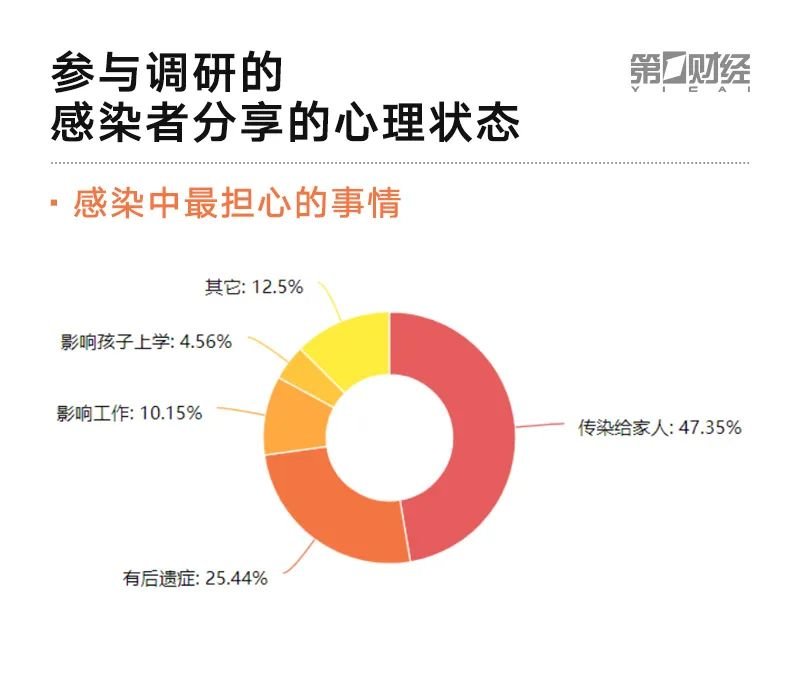 近50%的感染者最担心传染给家人,超25%的感染者担心有后遗症。除此以外,还有一些未成年人表示担心影响自己学习进度、考试等,一些丈夫们留言说到担心自己怀孕的妻子和未出世的宝宝,学生和打工人则表示担心自己能否顺利回家。当然,还有一部分人表示完全不担心。