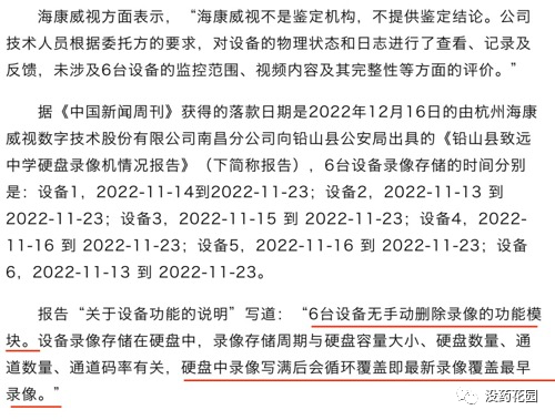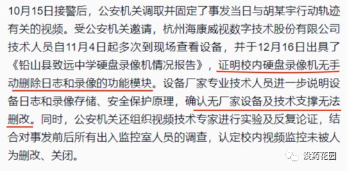 警方第一份通报里称,请海康威视鉴定过,确认没有厂家设备和技术支持的话,视频无法修改,因为 校内的硬盘录像机根本就没有手动删除日记和录像的功能。