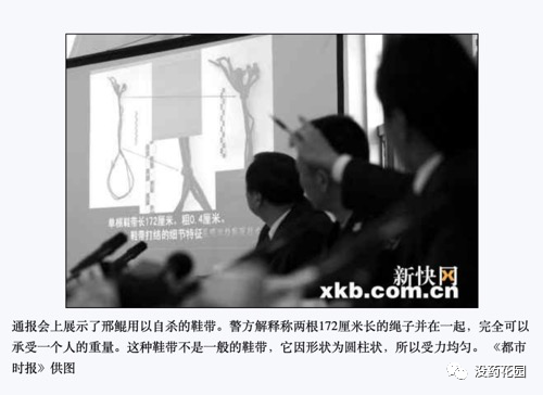 这个相似事件说明几点,一,听上去很尽职全面的搜索,也常常是有盲区的;二,自缢男子挂在鞋带上半个月,头身不会分离。