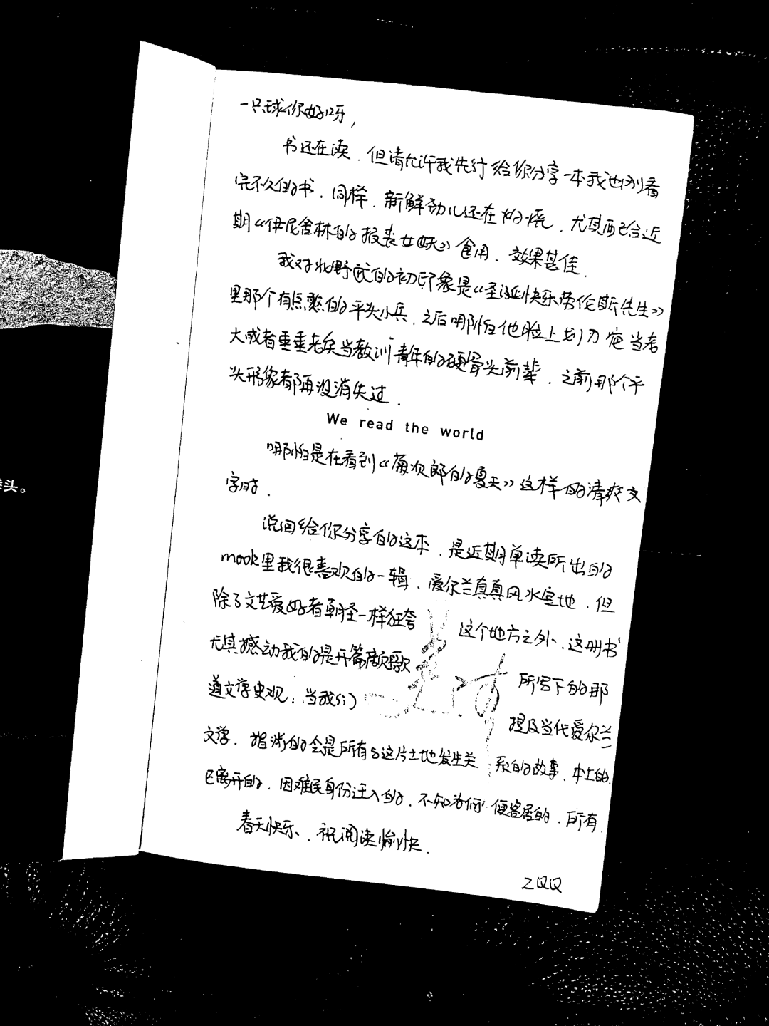 我们猜到你过年回家的箱子里一定(煞有介事地)带了本啥(听说机场书店里各个版本的《活着》是年关销量王)。经历了几天饲养后,又会原封不动地把它带回来。所以这里隐隐也有督促的意思。开春了,可以开始读书(并与我们换书)了。