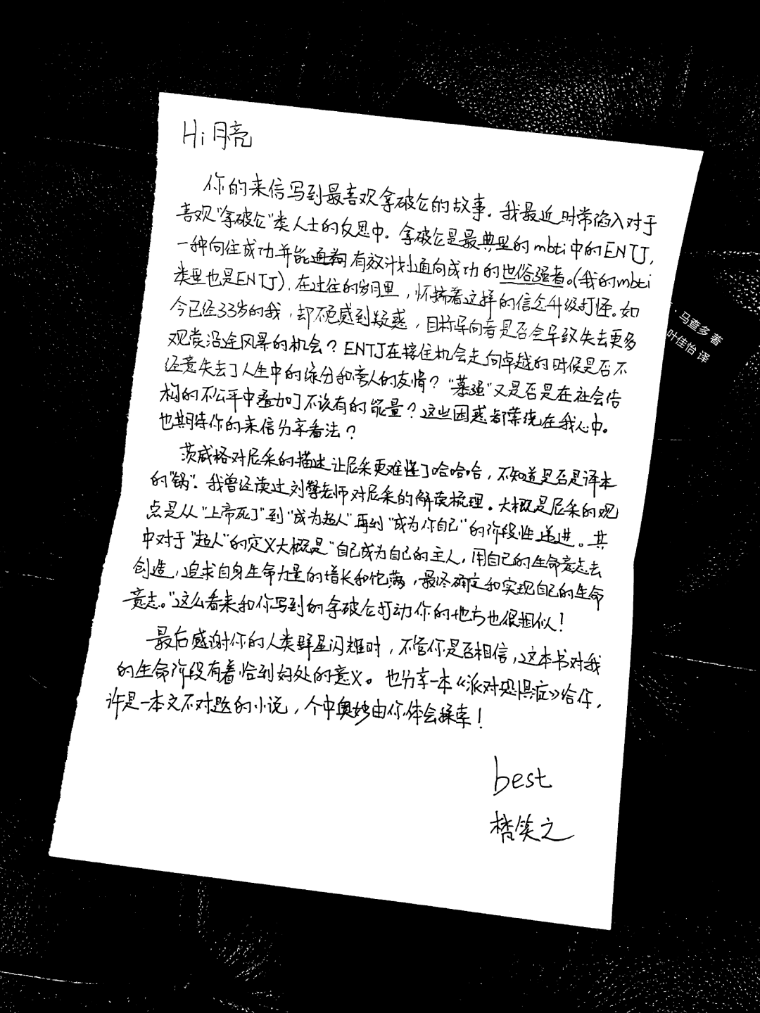 笔记 031 ,在月亮寄来的《人类群星闪耀时》里 ta 写,自己最喜欢拿破仑的故事。我们在回赠的《派对恐惧症》里试图展开聊了聊拿破仑的 MBTI ,也分享了些对尼采的小看法。希望月亮也能享受阅读回寄的这本“文不对题小说”的快乐。