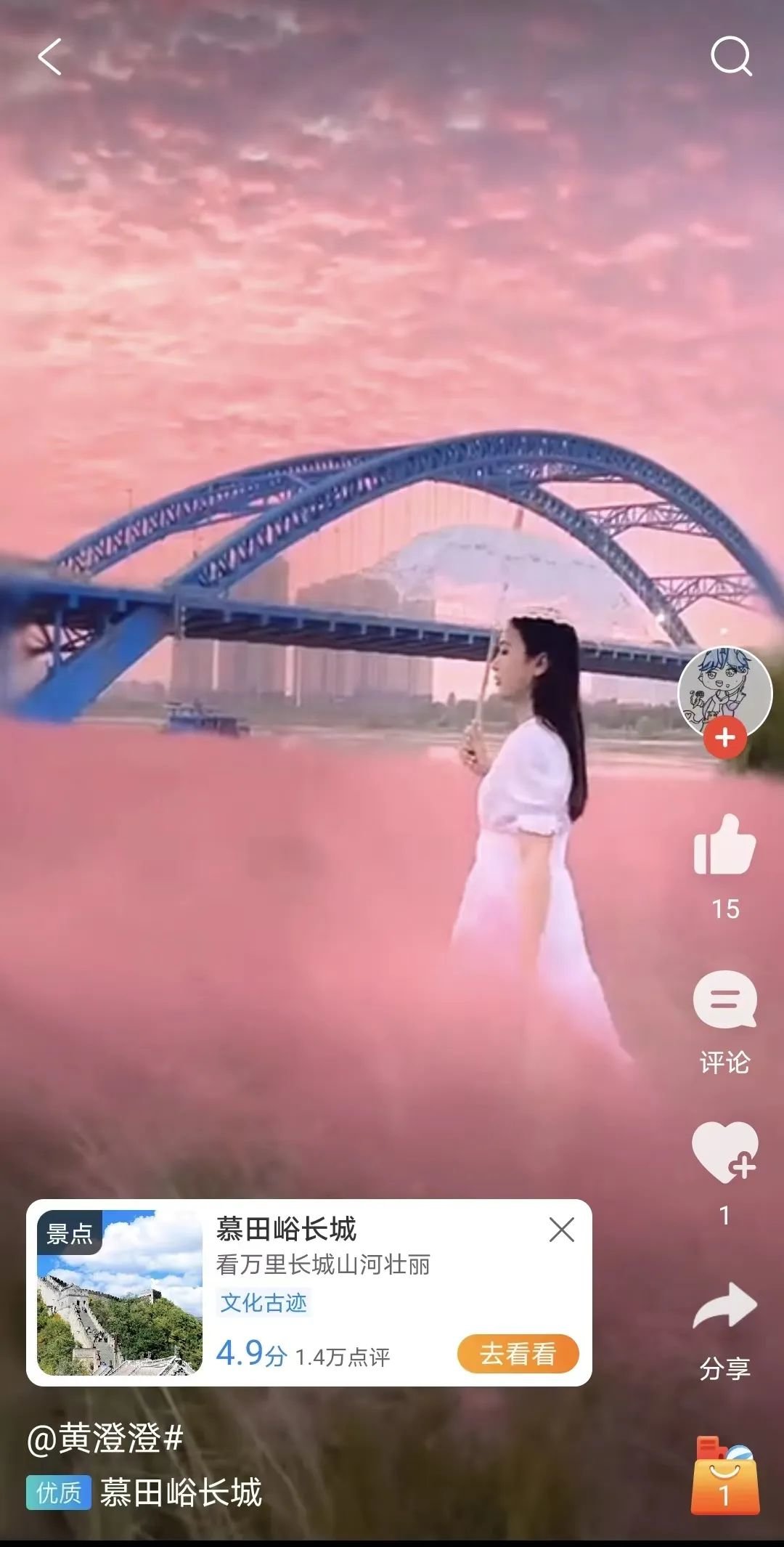 古北水镇于2010年建造完成,十年后,它被北京市文化和旅游局评为首届北京网红人文景观类打卡地,目前排在抖音团购带货榜周榜第一、月榜第二,@古北水镇景区的抖音号上有450条短视频,获赞119.3万,并且还有店铺与团购,可以预定酒店也可以一键下单古北水镇的各种周边。