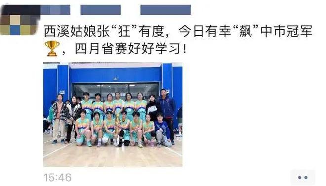 杭州姑娘“小黄瑶”的篮球教练在朋友圈晒出喜报,“小黄瑶”和队友们一起在浙江省第十六届中学生篮球联赛杭州市级比赛中,为杭州市西溪中学夺得了初中女子组冠军!这也是西溪中学历史上第一次夺得这项比赛冠军。