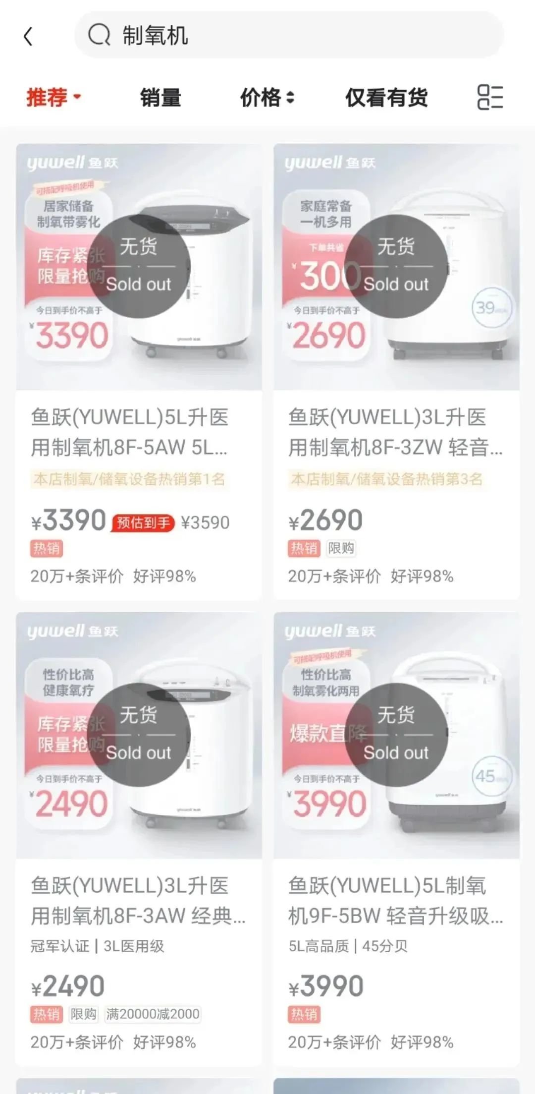 然而,晚两天下单的用户就没有那么幸运了。12月23日,记者登录多个电商平台,发现制氧机正在接二连三地售罄。